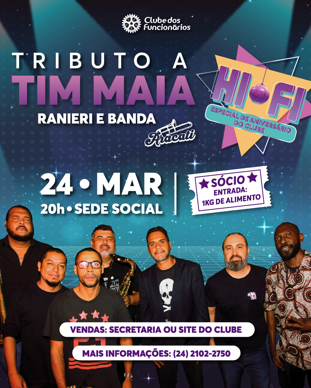 O evento é uma das comemorações de aniversário do Clube dos Funcionários, como destaca o presidente da organização, Gustavo Tramontin. “O Hi-Fi já faz parte do calendário Alvigrená e nada melhor do que dedicar essa festa aos 81 anos do Clube. Esse tributo ao Tim Maia será muito especial, estamos preparando tudo com muito carinho para os nossos associados e amigos. Será uma noite memorável”, comentou Tramontin.
