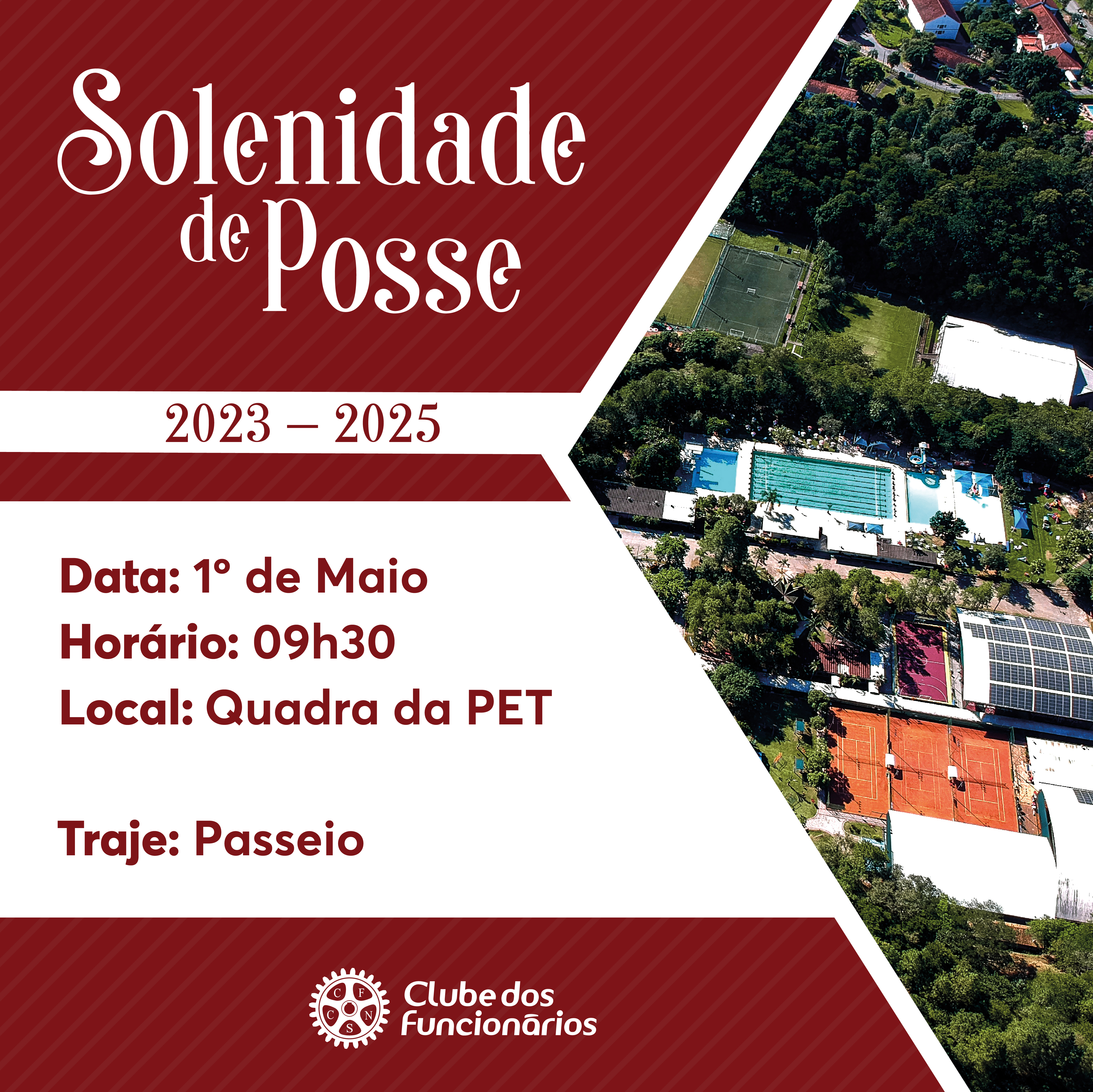 Família Alvigrená! A Diretoria, Conselho e Grande Conselho convida todos os associados para a Solenidade de Posse do Presidente e Vice-Presidente eleitos do Clube dos Funcionários da CSN para o Biênio 2023-2025.