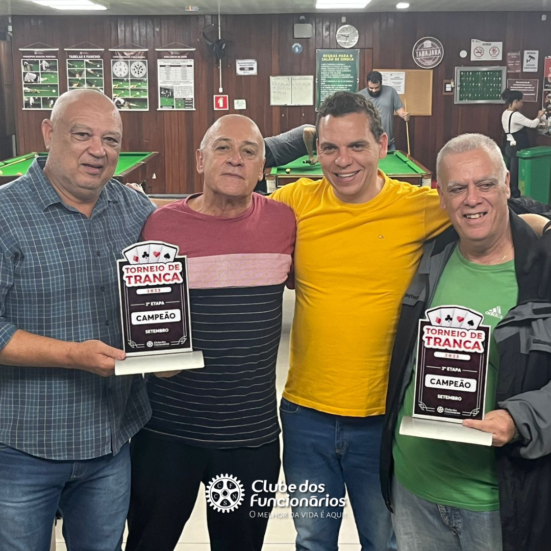 O Torneio Interno de Tranca movimentou o Salão da Sinuca na última semana, os jogos foram disputados entre os dias 25 e 29 de setembro. Na última sexta-feira aconteceu a grande final, uma noite de comemoração e premiação dos participantes! Confira os resultados: