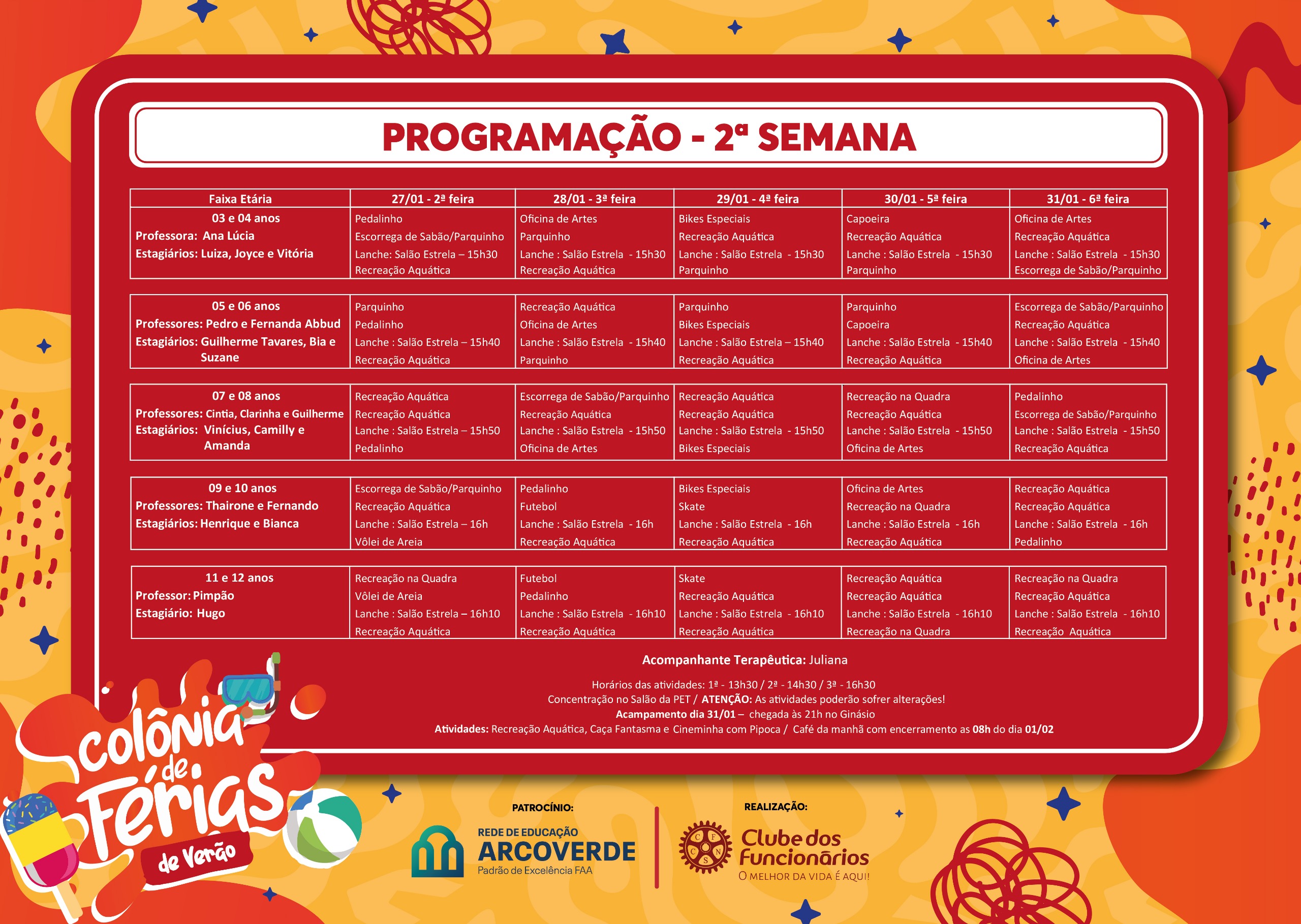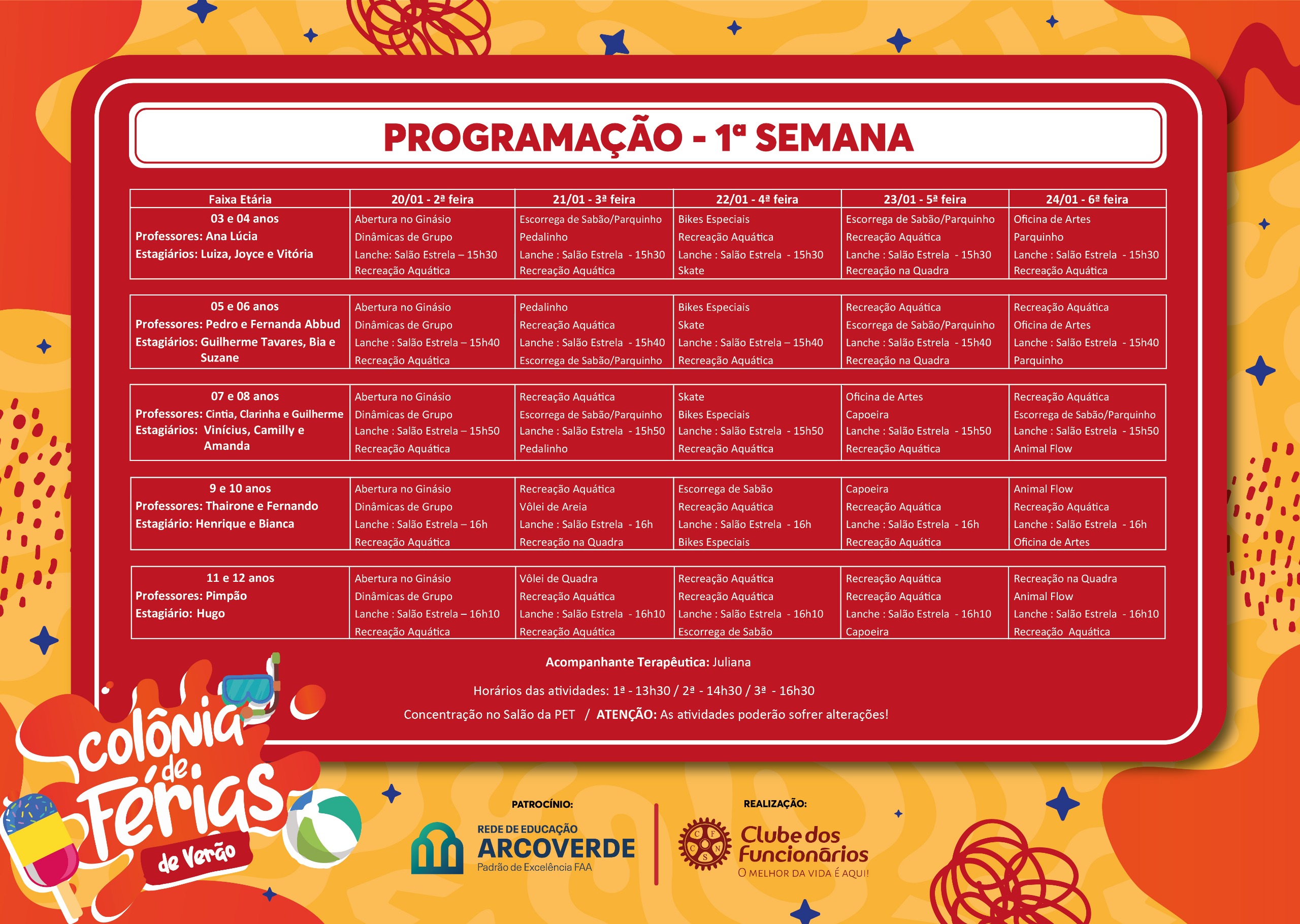 Estão preparados para dias de muita diversão? Nossa Colônia de Férias de Verão começa na segunda-feira, dia 20 de janeiro! Confira a programação:
