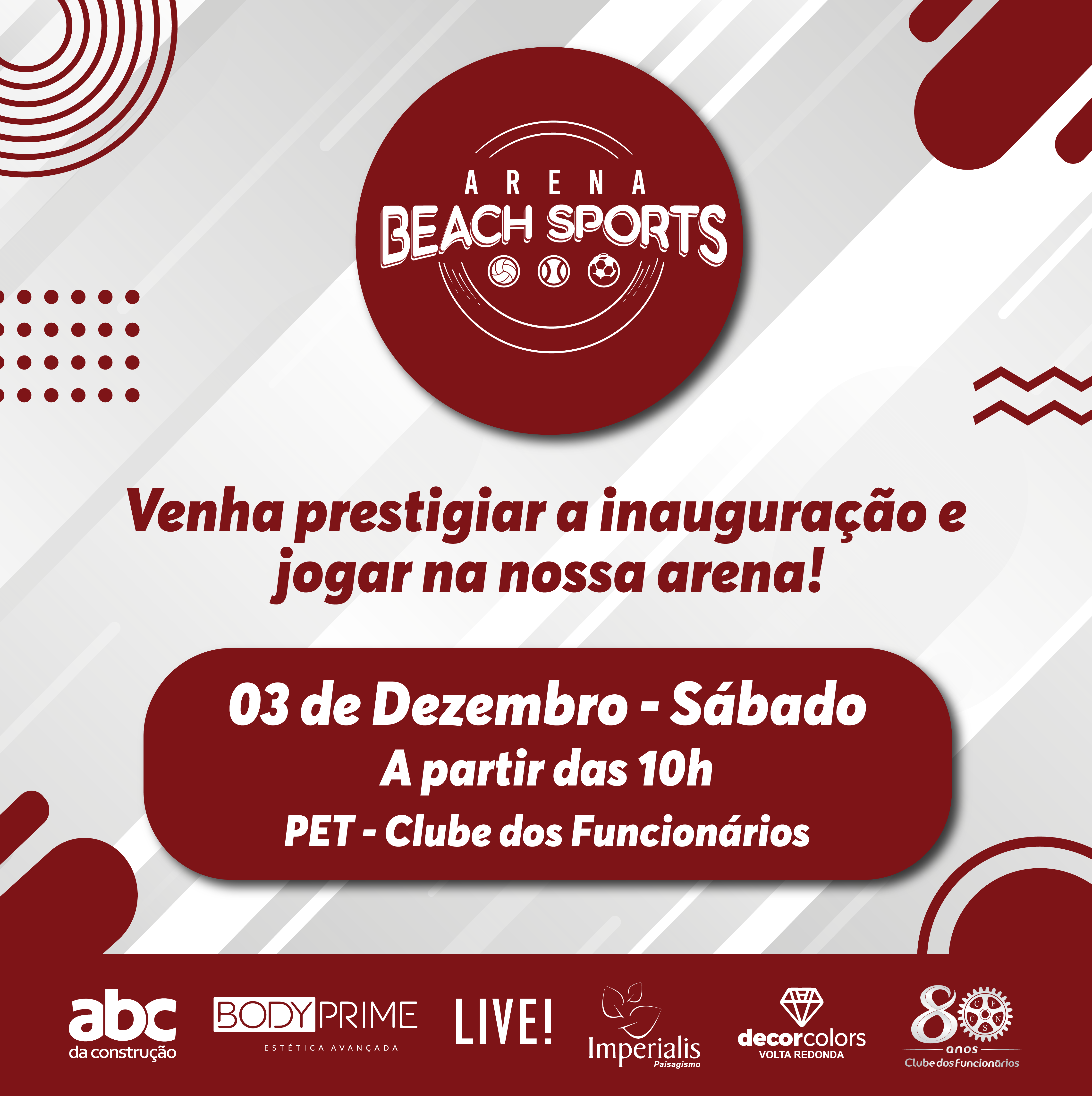 No próximo sábado, tem inauguração da Arena Beach Sports! Um espaço todo revitalizado para você se divertir e jogar beach tennis, futevôlei e vôlei de areia na PET! ?????????